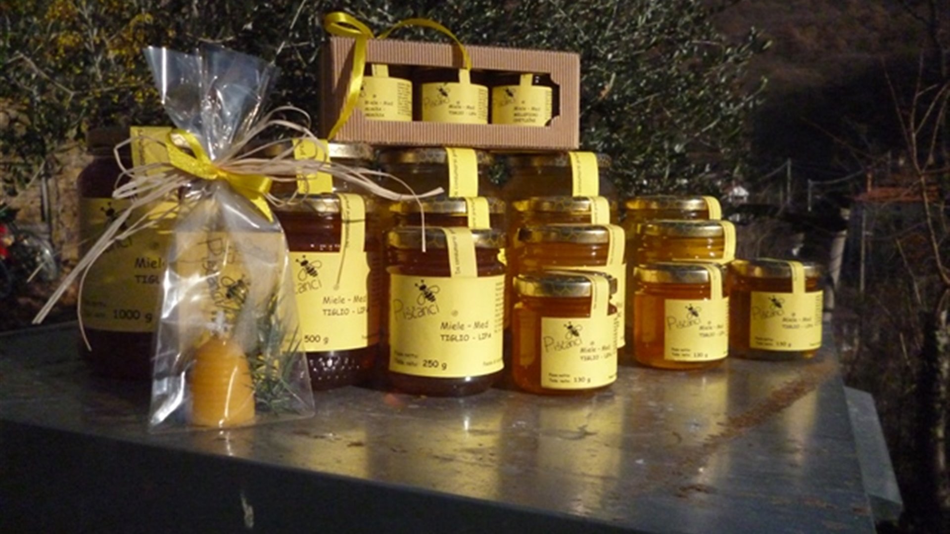 Si possono trovare miele di acacia, tiglio, millefiori primaverile, millefiori estivo, miele di bosco - melata.