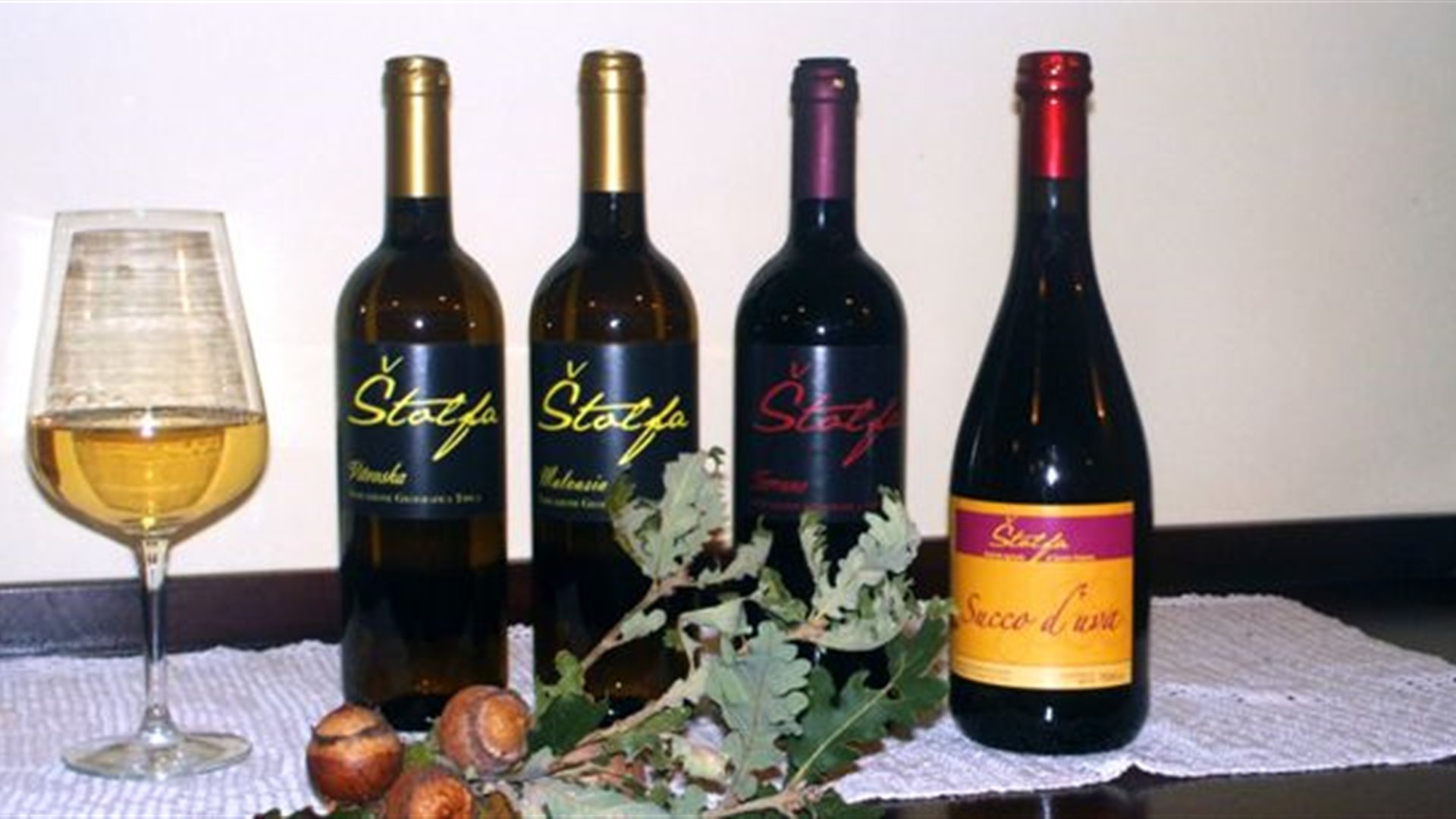 La nostra azienda produce una discreta quantità di vino sia bianco che rosso, che nella maggior parte viene venduto a terzi o consumato presso il nostro ristoro come vino da tavola. Questo vino proviene da vari uvaggi di Malvasia, Vitovska, Sauvignon per i bianchi e Terrano e Merlot per i rossi, che non vengono coltivati separatamente e quindi non adatti all'imbottigliamento. Il risutato di questa mescolanza di uvaggi è un vino gradevole, fresco, dal buon aroma, che si dimostra ottimo per accompagnare i prodotti della nostra cucina. Oltre a questo la nostra azienda produce anche una piccola quantità di bottiglie con le uve provenienti da vigneti separati. Gli uvaggi sono quelli classici che non tradiscono mai e che sono parte della tradizione vinicola carsolina: il Terrano, la Malvasia e la Vitovska. A questi vini viene dedicata una particolare attenzione sia nella coltivazione che nella vendammia e successiva maturazione in cantina. Non utilizzando ausili tecnologici particolari non otteniamo una grande quantità di bottiglie, ma quanto prodotto è di alta qualità e i premi ricevuti lo dimostrano.