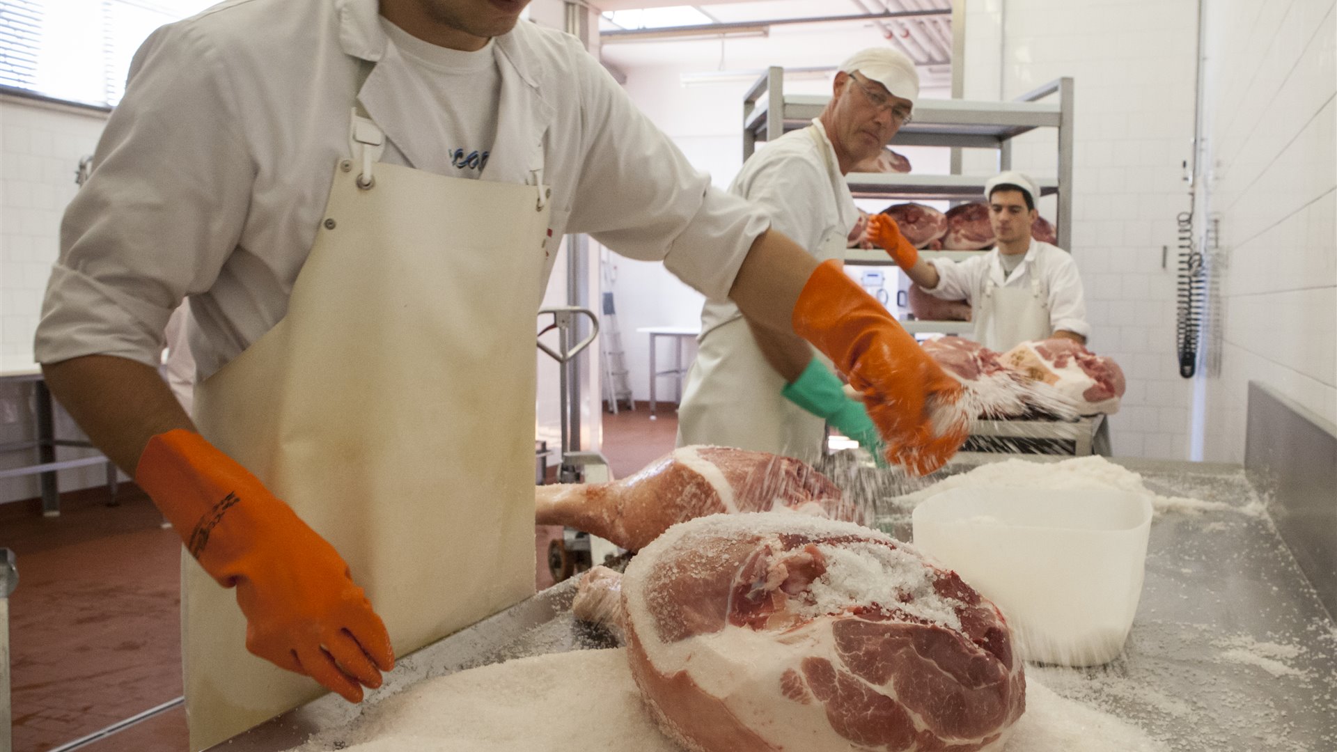Crediamo molto nel microclima di San Daniele. Crediamo che la posizione di San Daniele sia unica e pertanto apriamo e chiudiamo le finestre ancora a mano come un tempo seguendo il clima, il tempo, senza orario definito a priori ma solo con molta esperienza e tanta passione. Una lunga stagionatura, naturale, nei nostri saloni, senza ventilazioni forzate, ma seguendo le stagioni sono la fase più importante per caratterizzare i profumi e i nostri aromi che poi si avvertiranno nel prosciutto.