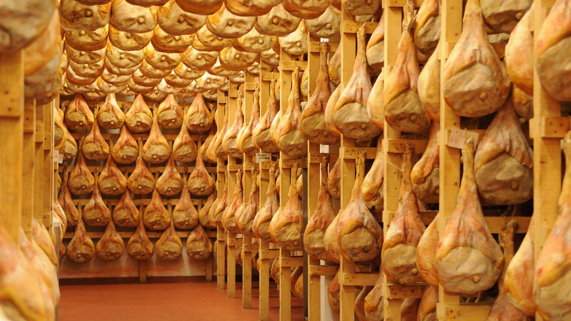 Produciamo circa 13.000 cosce l’anno, tutta la lavorazione è artigianale, cioè manuale, e tutti i prosciutti sono marchiati San Daniele DOP. Vendiamo esclusivamente i prosciutti che introduciamo e che lavoriamo nel nostro prosciuttificio.